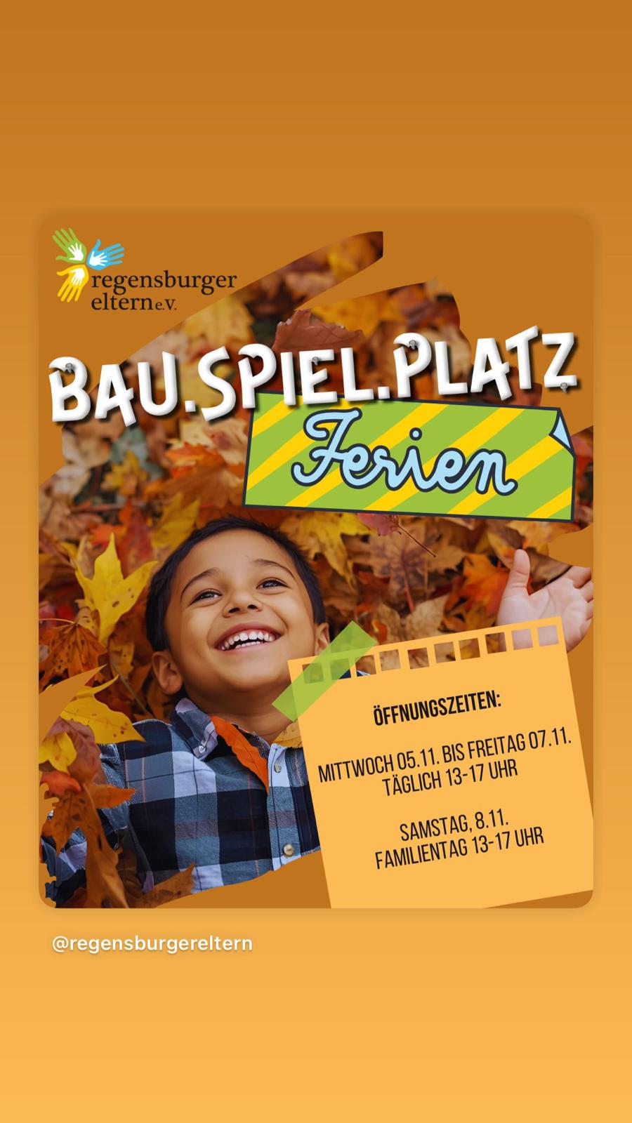 2017 haben die Regensburger Eltern den ersten Bauspielplatz in Regensburg eröffnet. Hier können Kinder im Alter von acht bis vierzehn Jahren während der Öffnungszeiten ihre eigenen Häuser und Bauwerke bauen. Die Nutzung des Platzes ist kostenlos, eine Anmeldung ist nicht erforderlich.