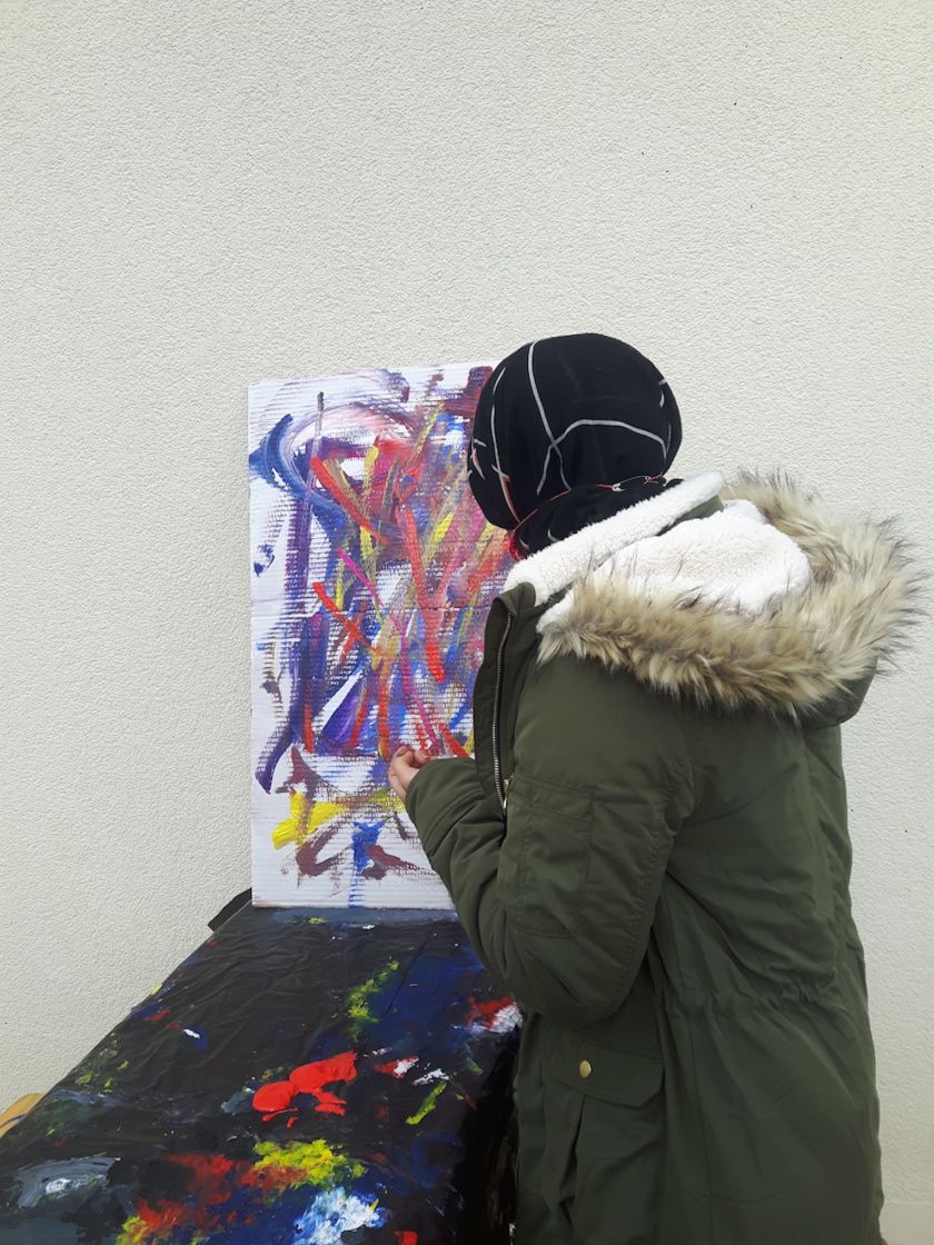 Seit Februar 2020 erschafft die Künstlerin Maria Kurzok mit ihrem Team einen besonderen Ort für die Kinder und Jugendlichen in den Regensburger Flüchtlingsunterkünften, einen Raum voller bunter Farben. Es entsteht eine geschützte Atmosphäre, in der sich Kinder und Jugendliche trauen können, an der Leinwand mit ganz viel Farbe zu malen und sich auszuprobieren.